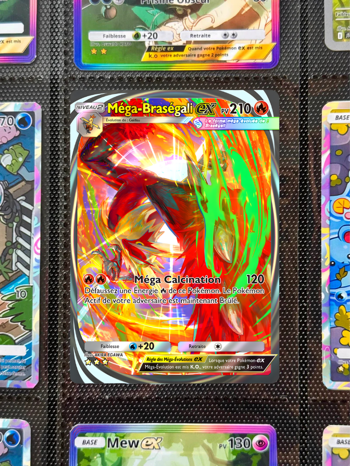 Plongez dans l’univers de TCG POCKET avec cette carte custom unique de Méga-Braségali, inspirée du jeu mobile à succès. Pensée pour les collectionneurs et les fans, cette création mêle qualité professionnelle et finition artisanale.