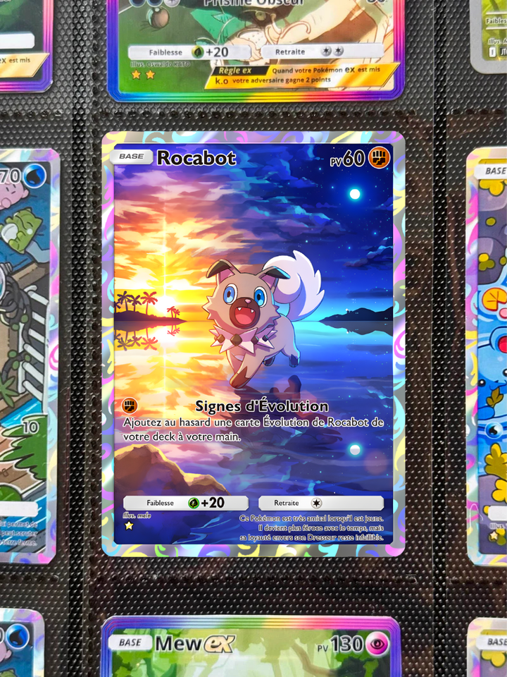 Plongez dans l’univers de TCG POCKET avec cette carte custom unique de Rocabot, inspirée du jeu mobile à succès. Pensée pour les collectionneurs et les fans, cette création mêle qualité professionnelle et finition artisanale.